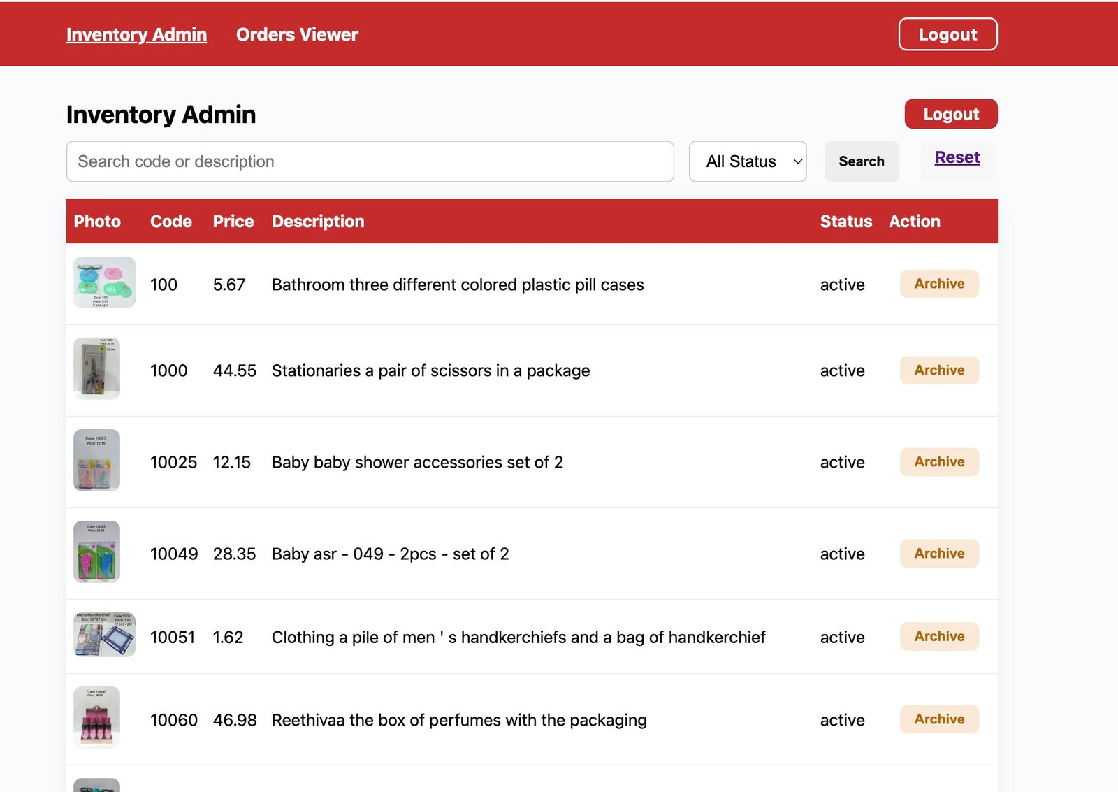 - Built an admin panel so staff can archive/unarchive products and view all incoming orders in a clear, systematic way—replacing the old method of processing Viber screenshots with quantities under each photo.