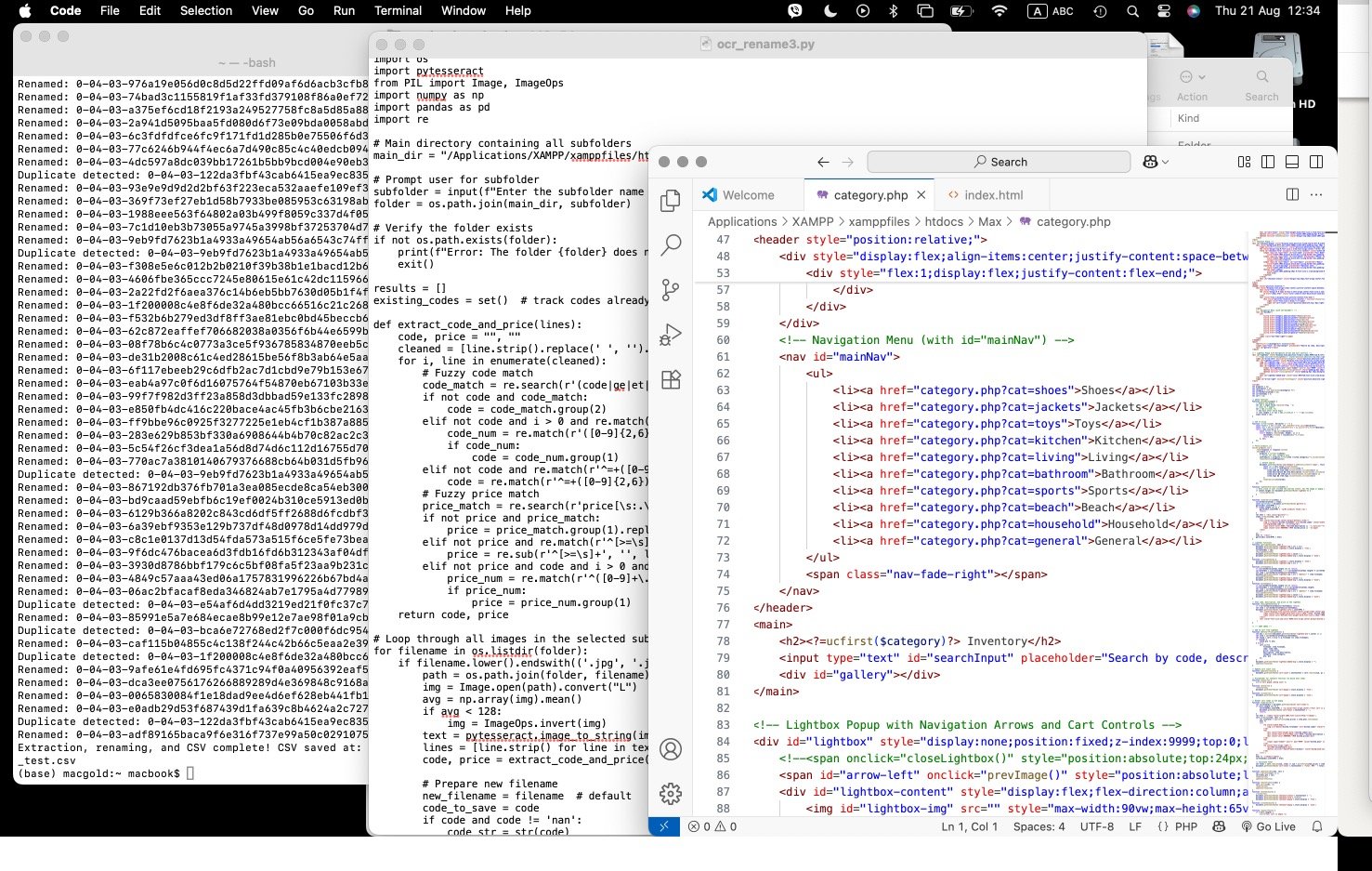 - Used Python scripts and Tesseract OCR to extract item codes and prices directly from product images (since Maxcede didn’t have a product database that ties to product images).