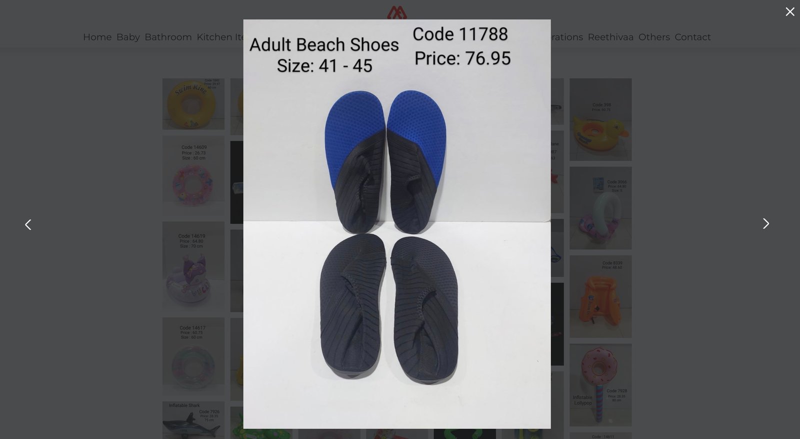 Product image popup from the original website—customers viewed enlarged photos with item code and price printed directly on the image.
